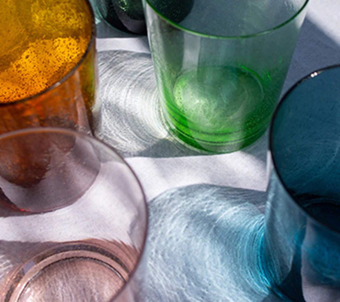 Hundreds of tiny air bubbles in the glass create a light, bubbly effect and add to the uniqueness of this charming range designed for every-day dining.Made from colourful recycled glass.
